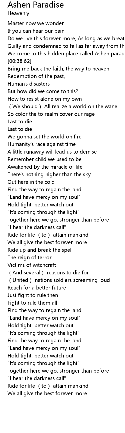 | [00:56.69] | Bring me back the faith, the way to heaven |