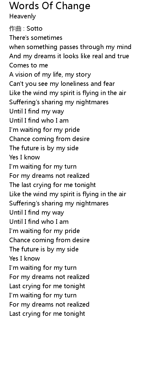 | Song | Words Of Change |