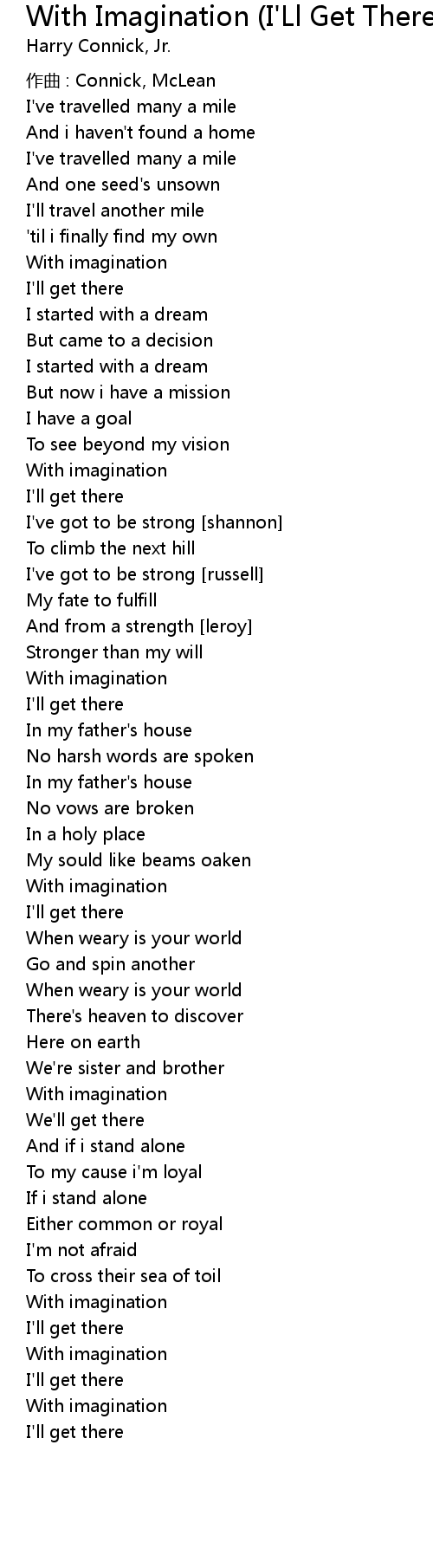| Song | With Imagination (I'Ll Get There) |