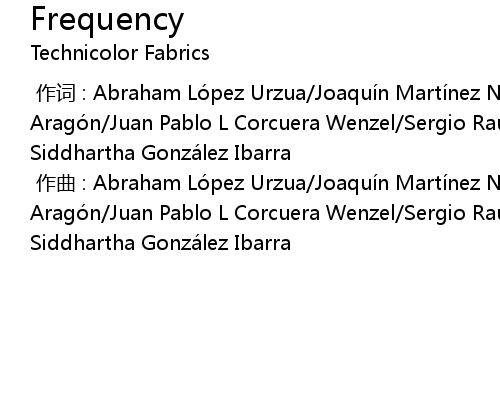 | [00:00.000] | 作曲 : Abraham López Urzua/Joaquín Martínez Negrete Aragón/Juan Pablo L Corcuera Wenzel/Sergio Raúl Cabrera Orozco/Jorge Siddhartha González Ibarra |
