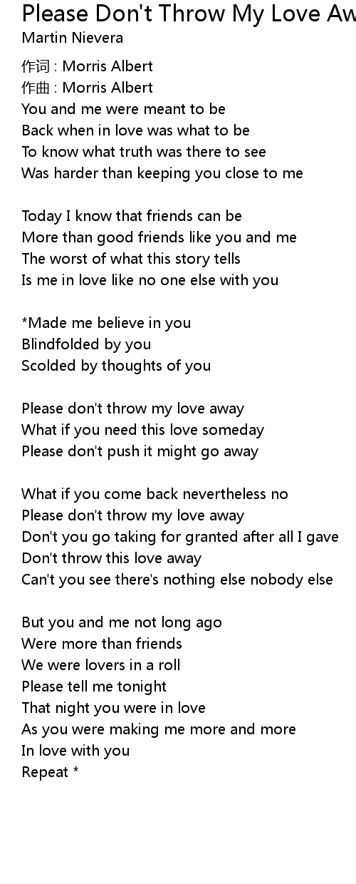 | Please don' t throw my love away | |