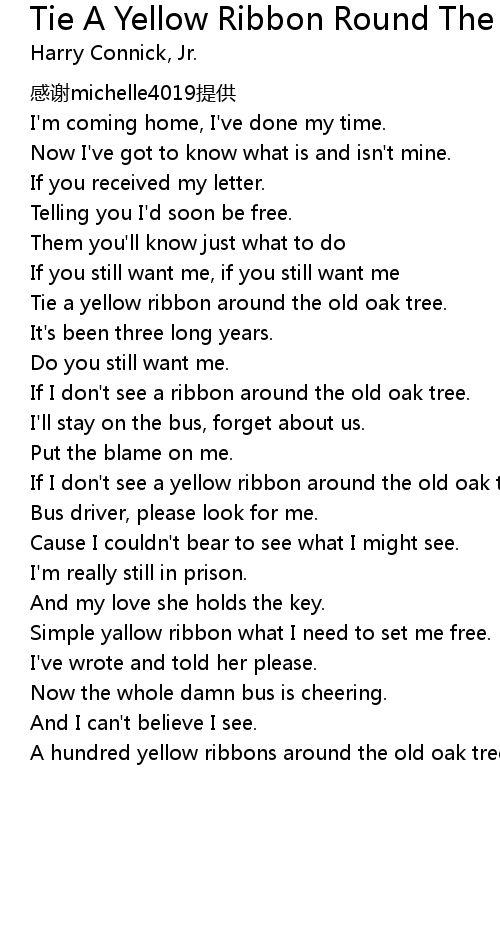 | If I don' t see a yellow ribbon around the old oak tree. | |