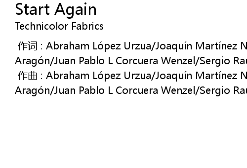 | [00:00.000] | zuo qu : Abraham Lo pez Urzua Joaqui n Marti nez Negrete Arago n Juan Pablo L Corcuera Wenzel Sergio Rau l Cabrera Orozco |