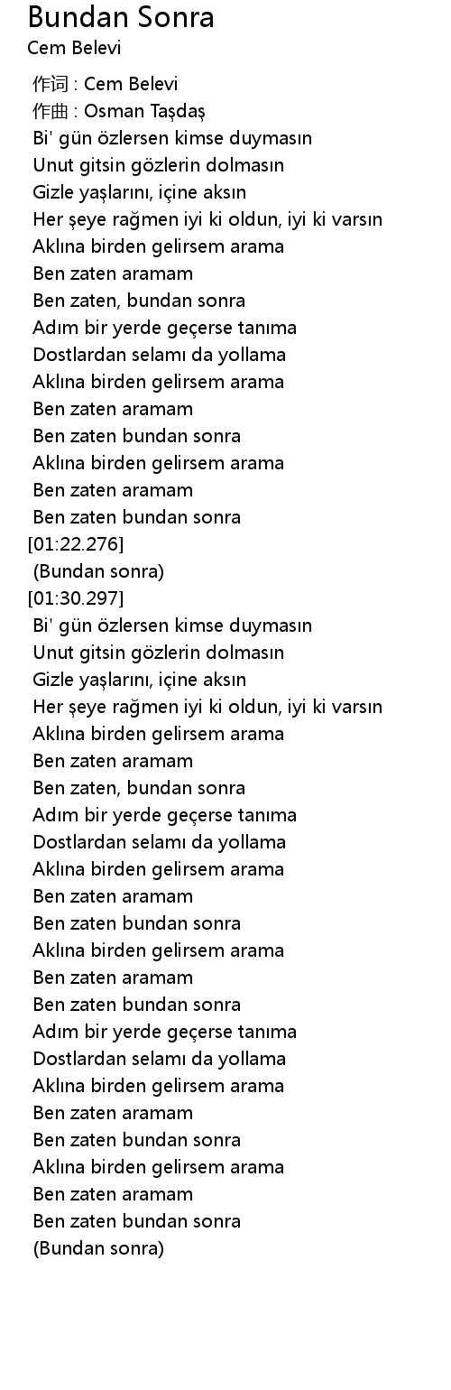 | [00:00.000] | zuò cí : Cem Belevi |