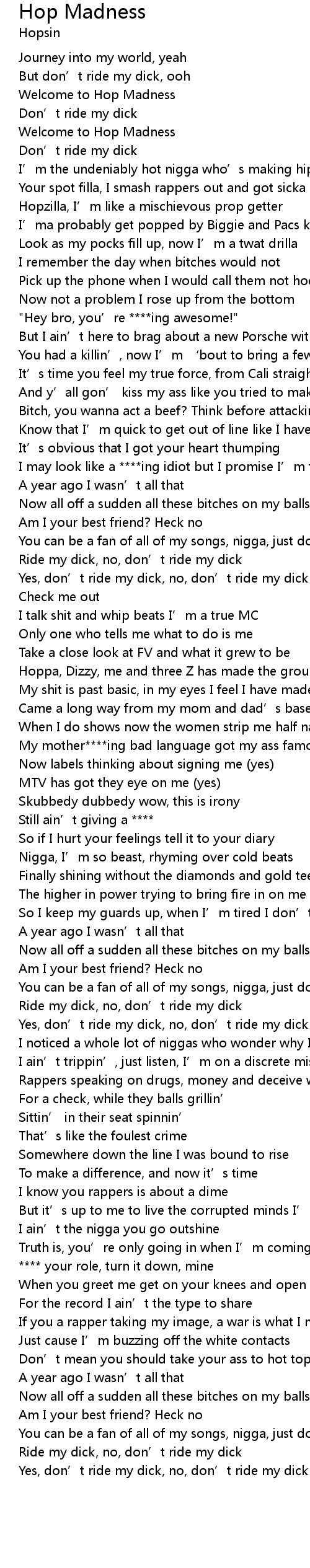 | Yes, don’t ride my dick, no, don’t ride my dick | |