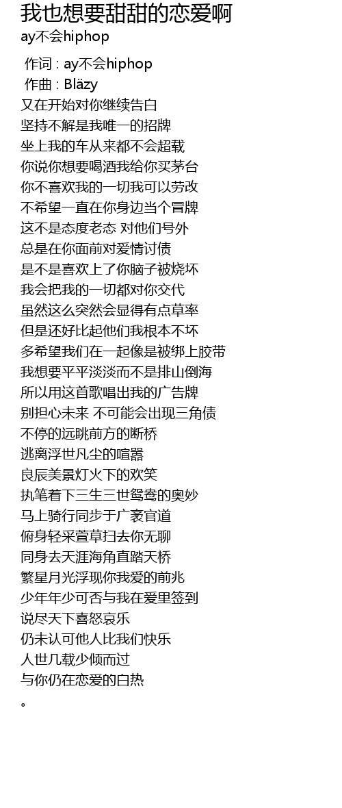 | [00:00.000] | zuò cí : ay bú huì hiphop |