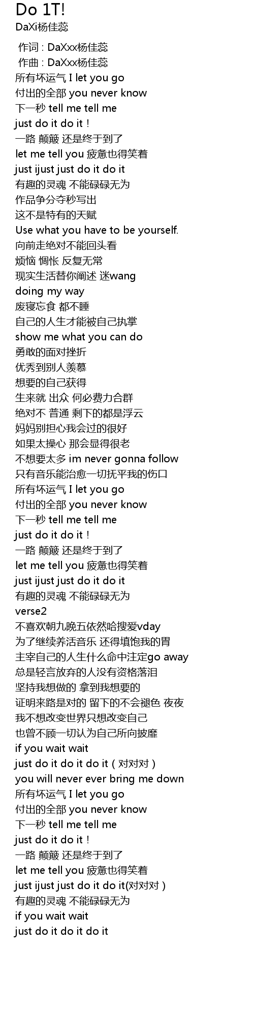 | [02:10.940] | just do it do it do it(对对对) |