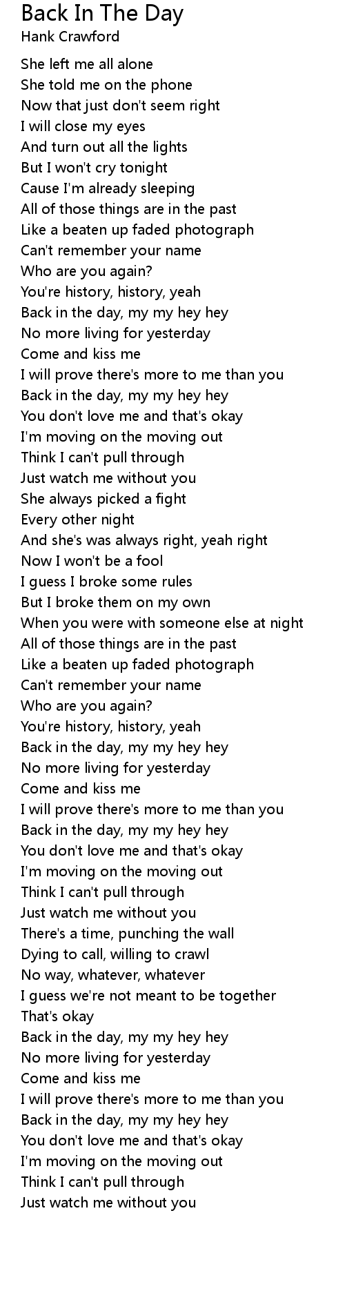 Back in the day, my my hey hey |