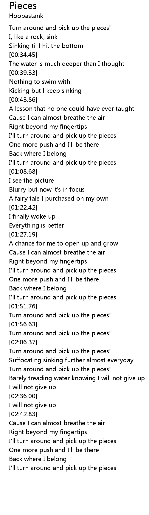 I'll turn around and pick up the pieces |
