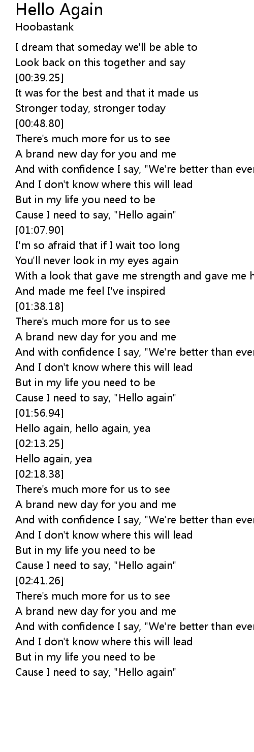 Cause I need to say, "Hello again" |