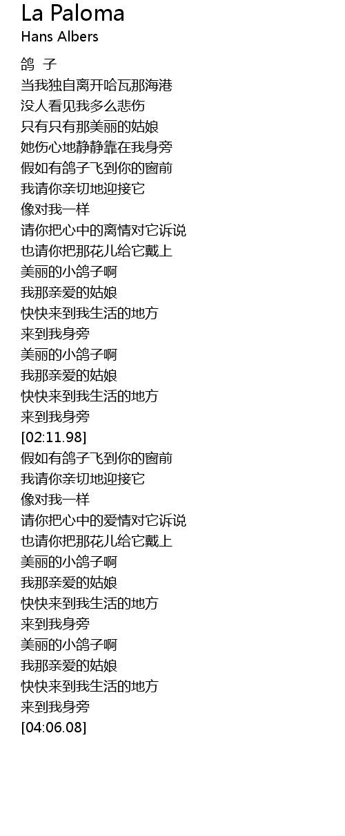 | [02:53.84] | 假如有鸽子飞到你的窗前 |