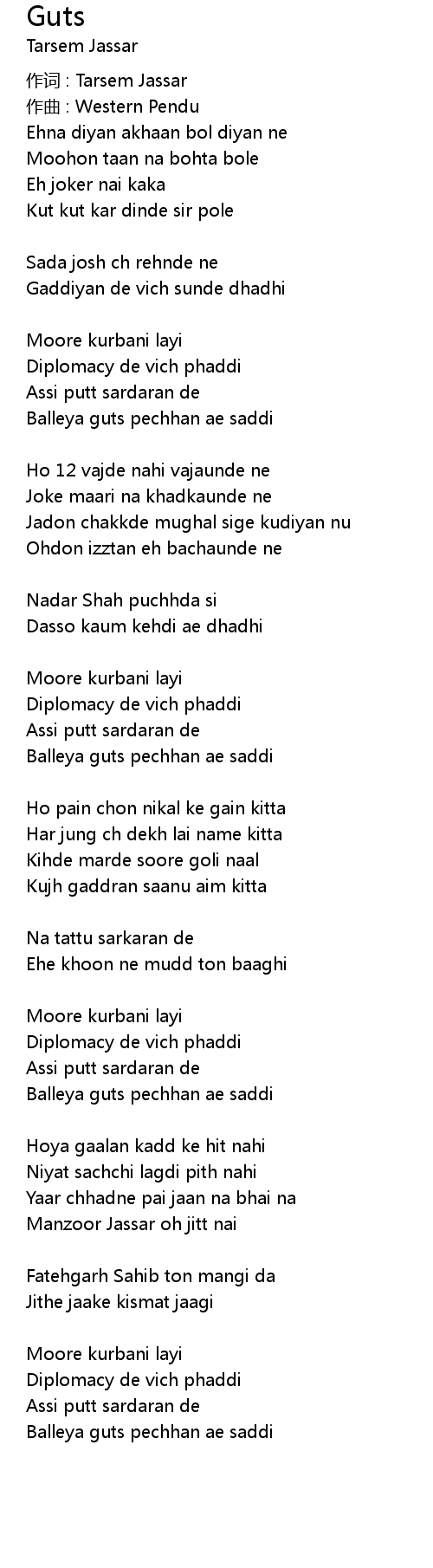 | 作词 : Tarsem Jassar | |