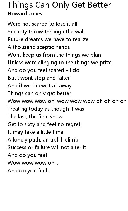 Things Can Only Get Better Lyrics