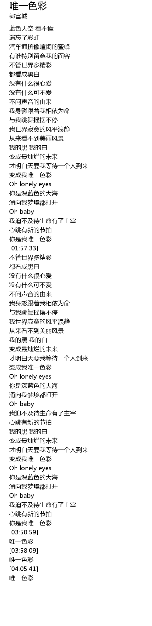 | [03:53.88] | 唯一色彩 |