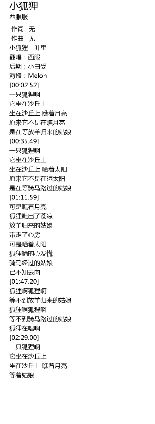 | [00:00.00] | 小狐狸 - 叶里 |