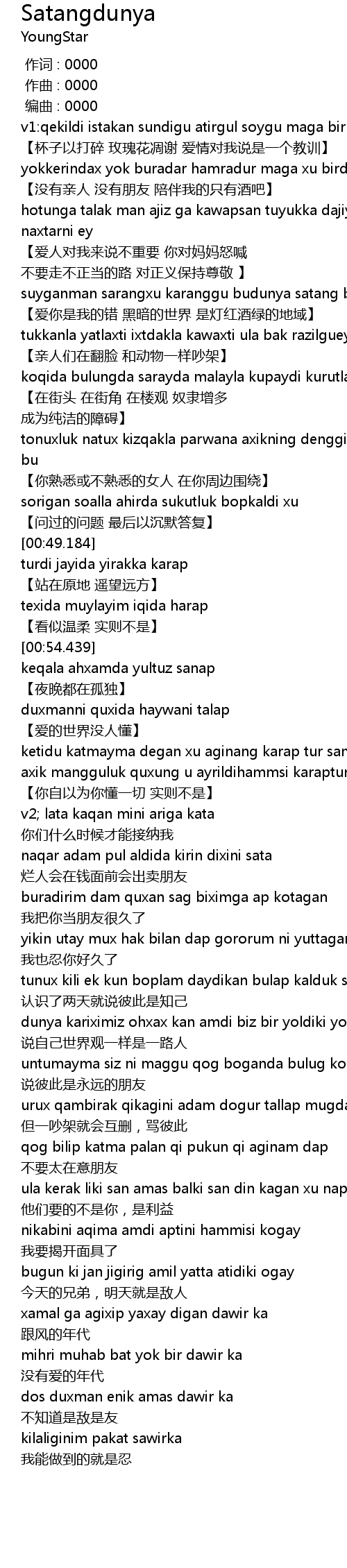 | [01:51.682] | dunya kariximiz ohxax kan amdi biz bir yoldiki yoldax |