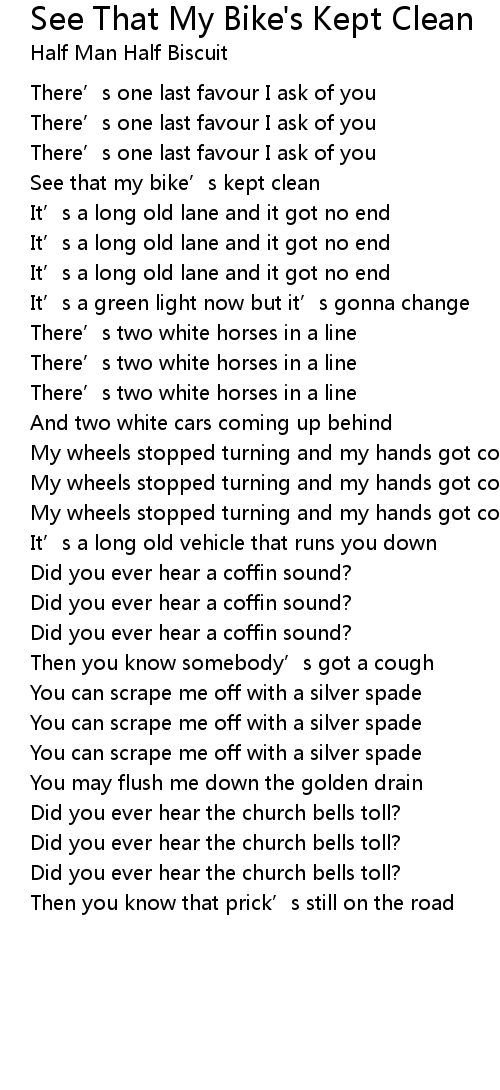 | Song | See That My Bike's Kept Clean |