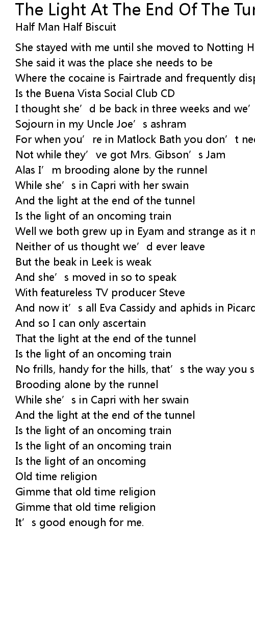 | Song | The Light At The End Of The Tunnel (Is The Light Of An Oncoming Train) |