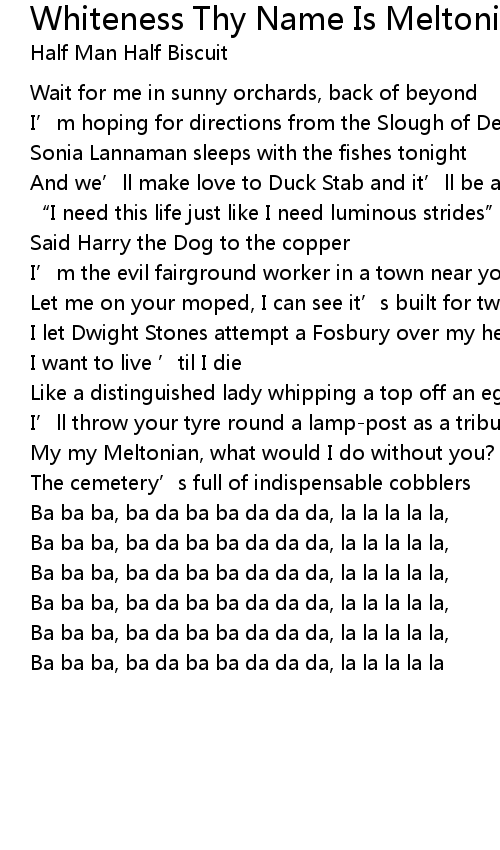 | Ba ba ba, ba da ba ba da da da, la la la la la, | |