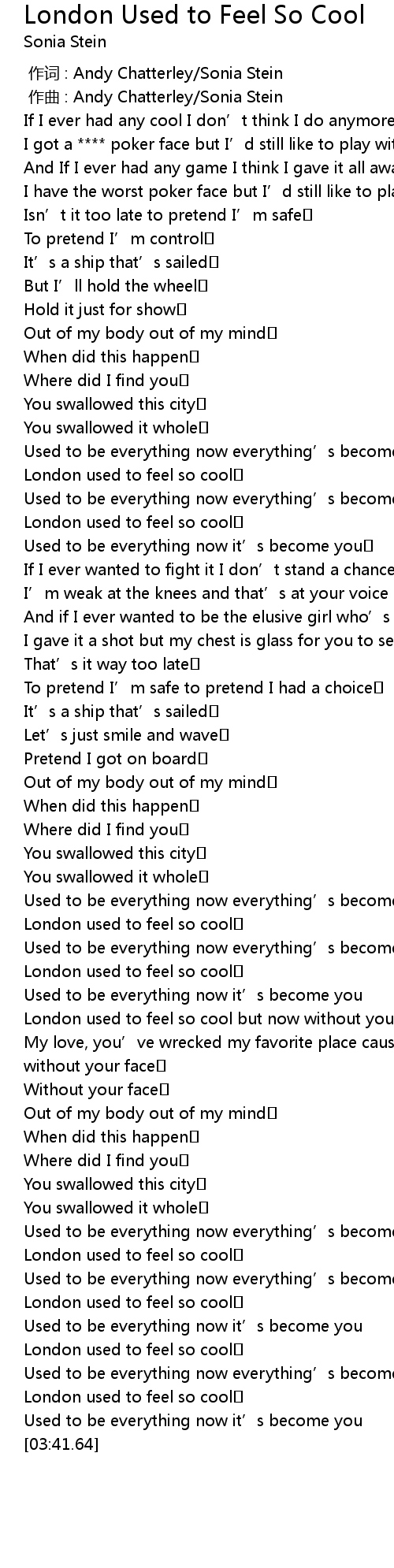 | [01:04.46] | London used to feel so cool |