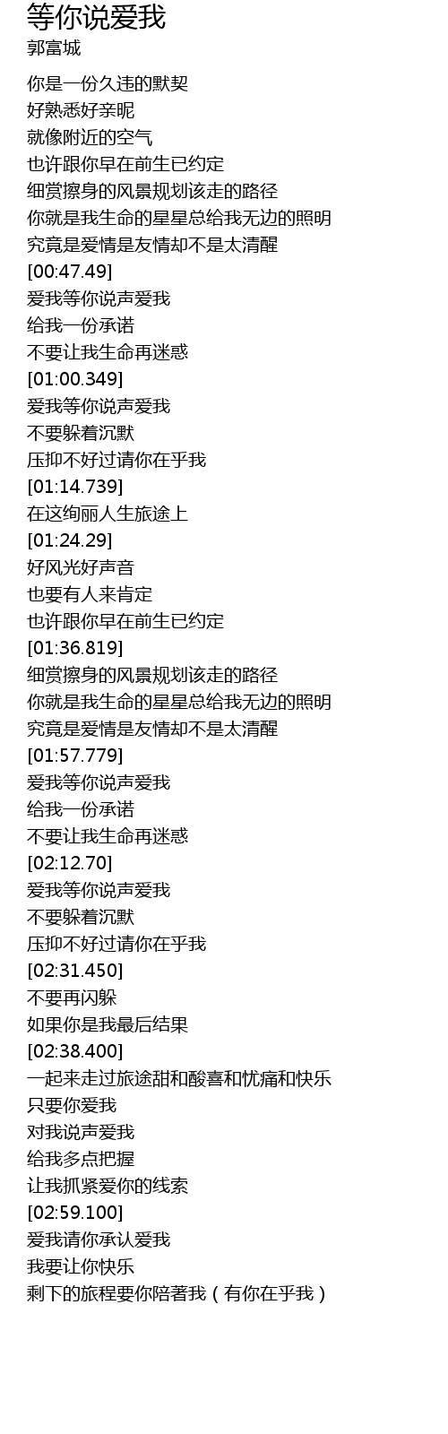 | [00:48.269] | ài wǒ děng nǐ shuō shēng ài wǒ |
