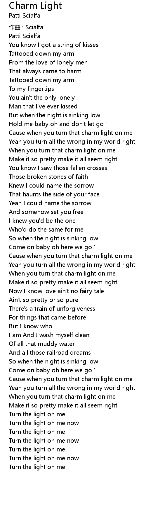 | Cause when you turn that charm light on me | |