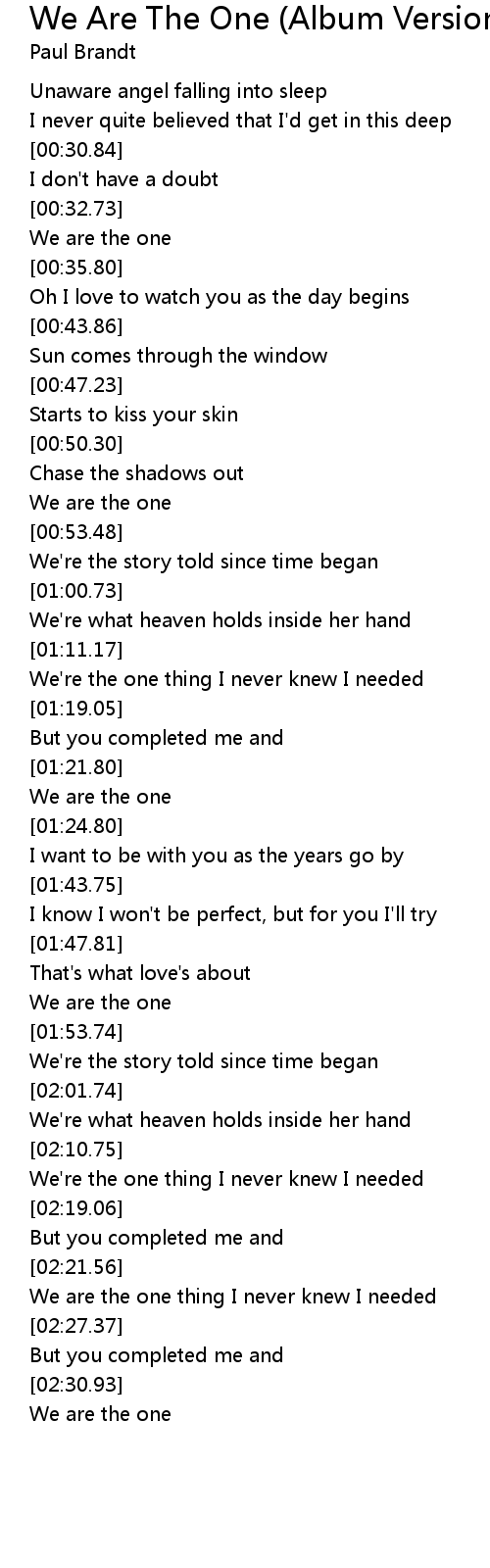 We Are The One (Album Version) Lyrics