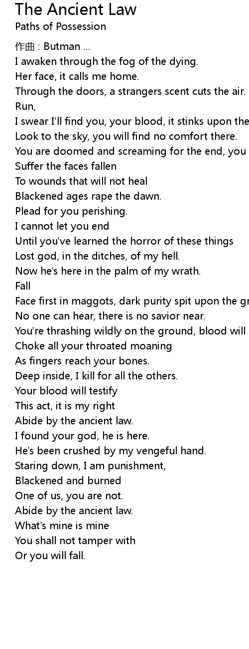 | Song | The Ancient Law |