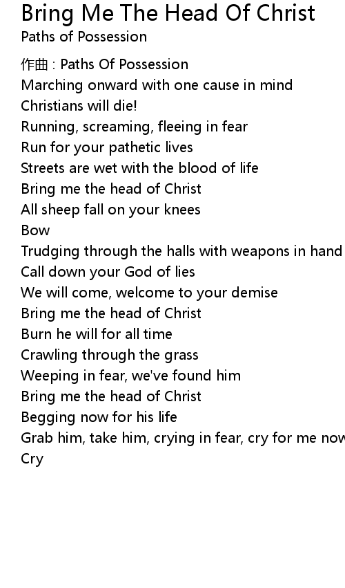 | Song | Bring Me The Head Of Christ |
