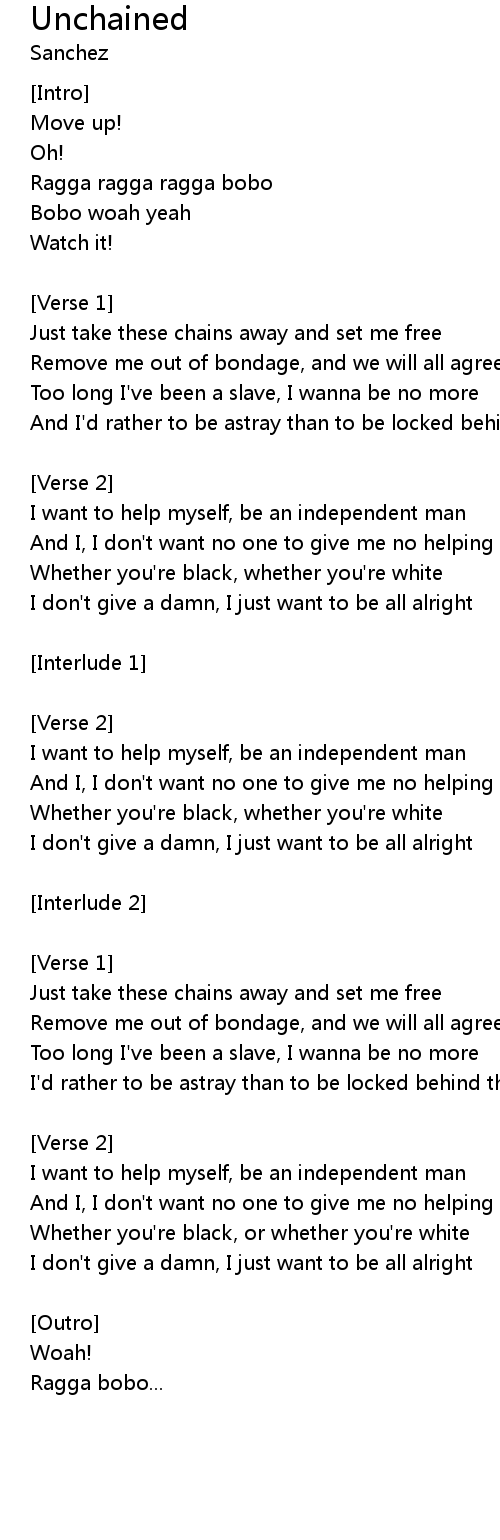 Just take these chains away and set me free |