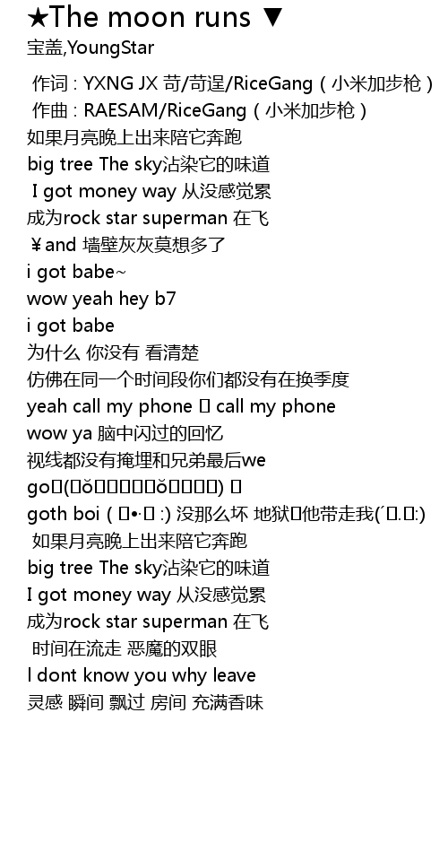 | [00:00.000] | 作词 : YXNG JX 苛/苛逞/RiceGang(小米加步枪) |