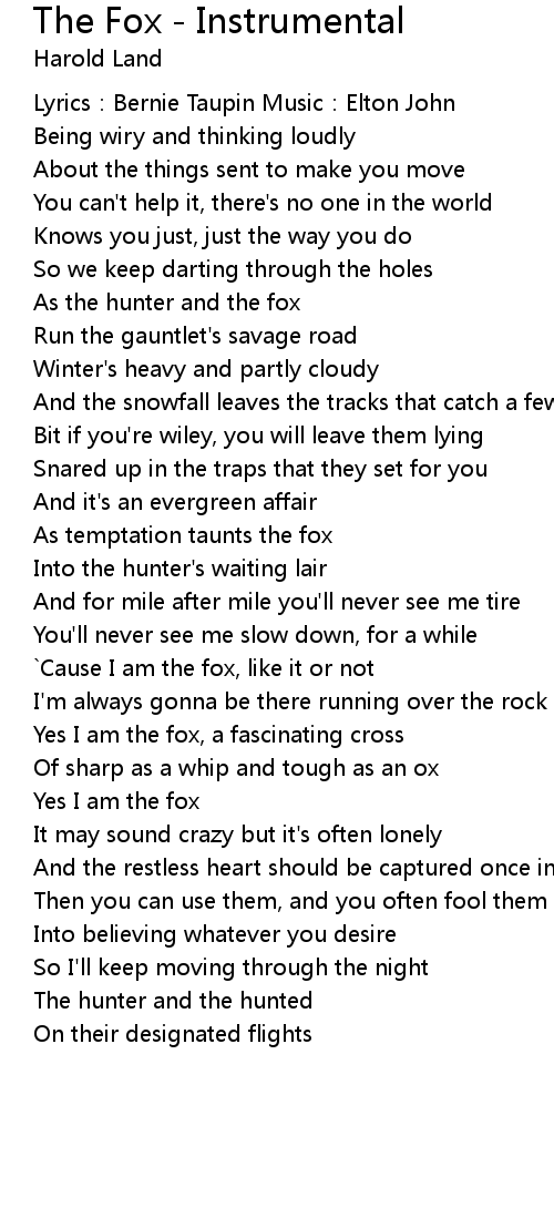 | Song | The Fox - Instrumental |