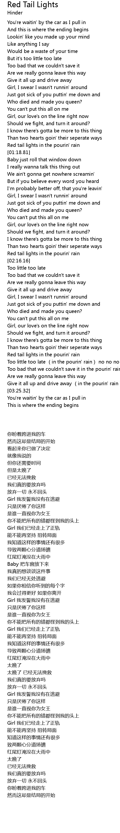 | [02:12.01] | Red tail lights in the pourin' rain |