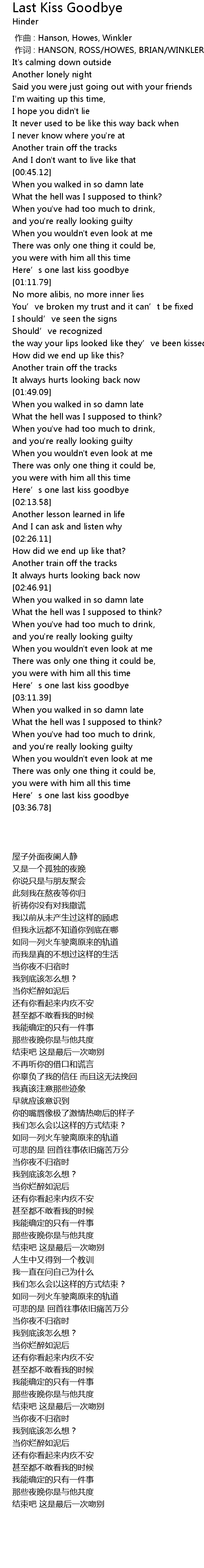 | [03:32.44] | Here’s one last kiss goodbye |