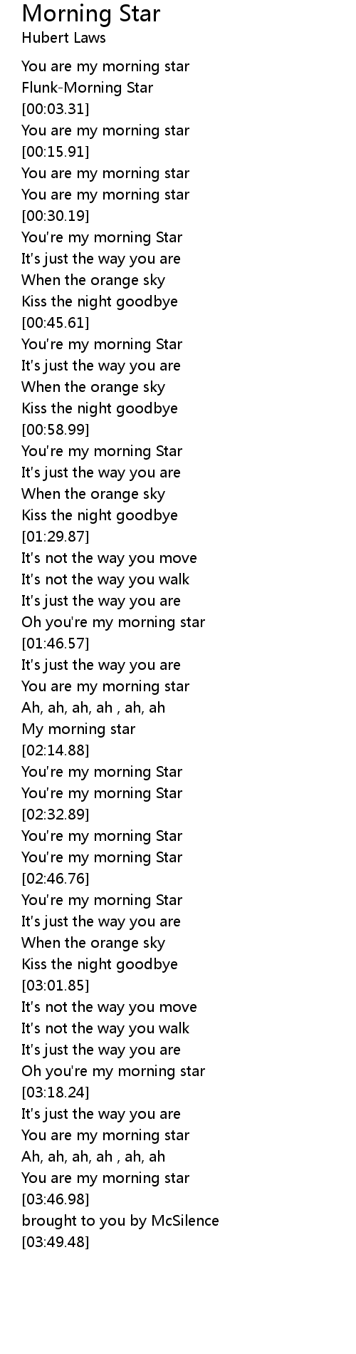 | [00:46.27] | You re my morning Star |