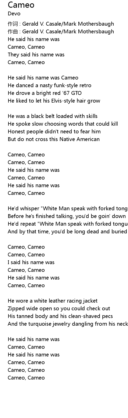 | 作词 : Gerald V. Casale/Mark Mothersbaugh | |