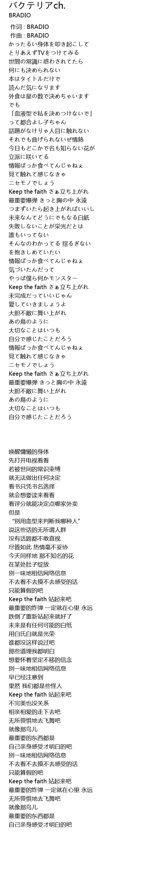 | [00:00.000] | 作词 : BRADIO |