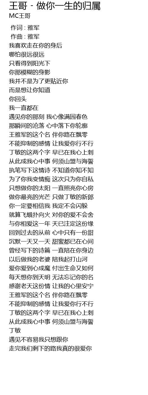 | [01:00.397] | 做你最亮的光芒 只做丁敏的新郎 |
