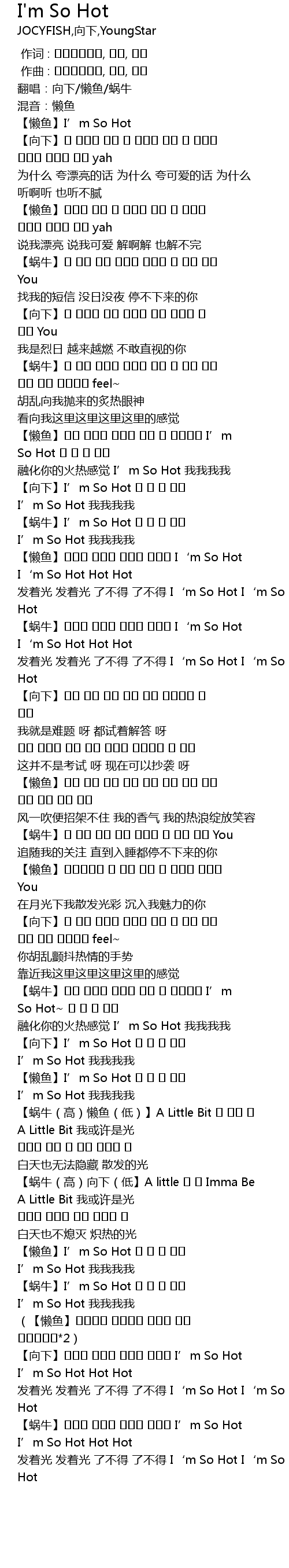 | [02:58.688] | xiàng xià I' m So Hot I' m So Hot Hot Hot |