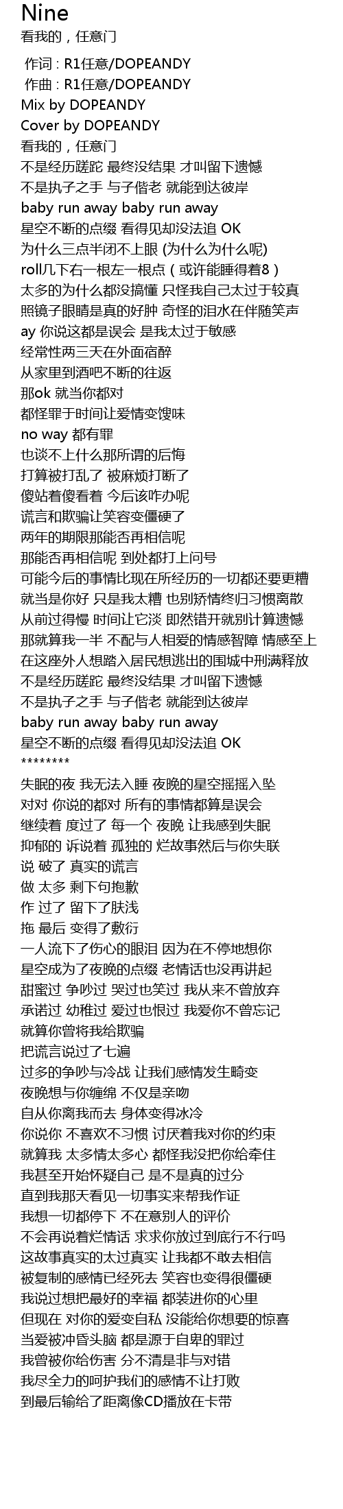 [00:00.000] zuò cí : R1 rèn yì DOPEANDY