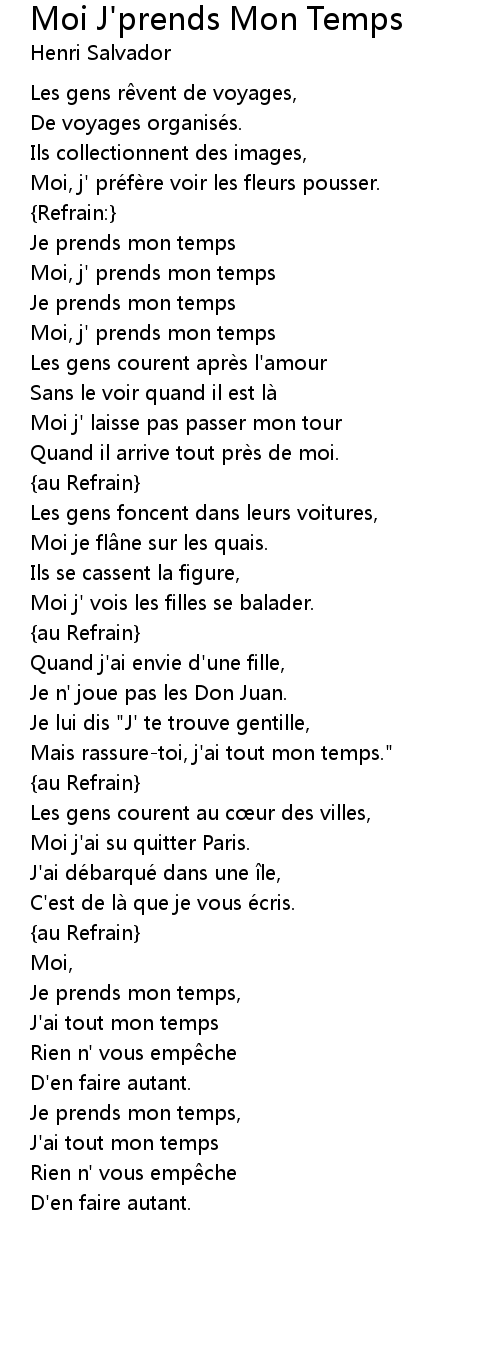 | Mais rassuretoi, j' ai tout mon temps." | |
