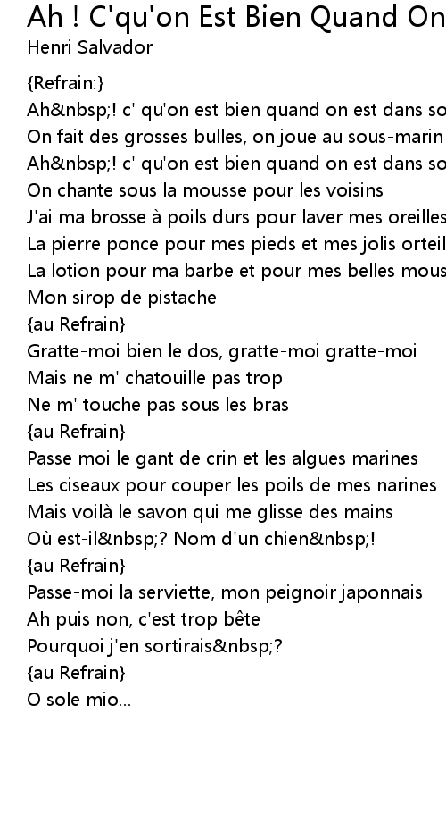 | Song | Ah ! C'qu'on Est Bien Quand On Est Dans Son Bain |