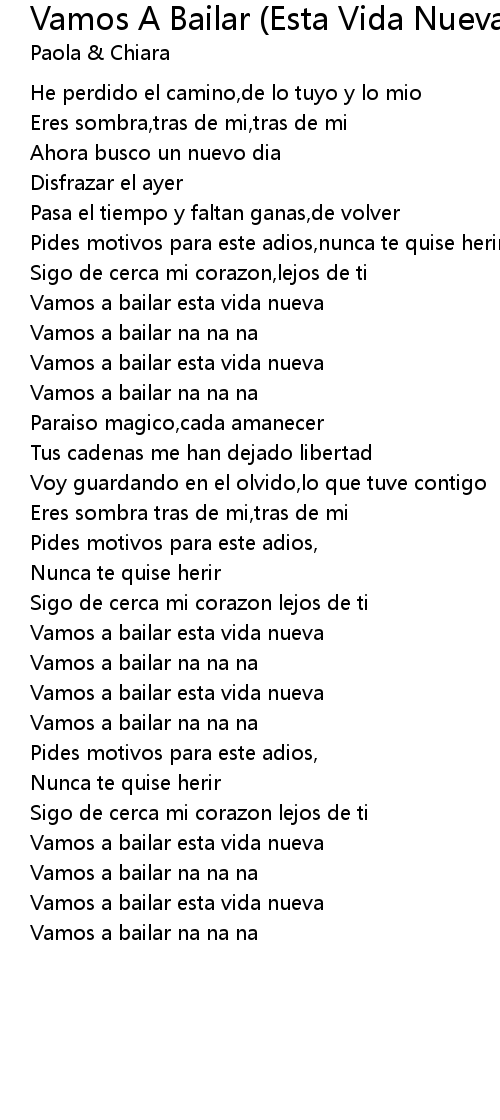 Vamos A Bailar (Esta Vida Nueva) - Festivalbar Cut Lyrics