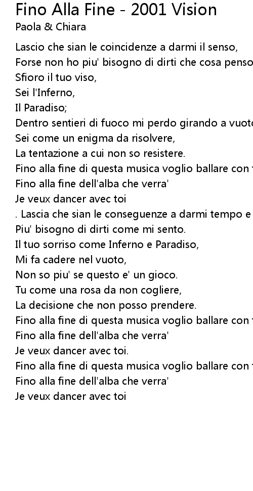 Fino alla fine di questa musica voglio ballare con te; |