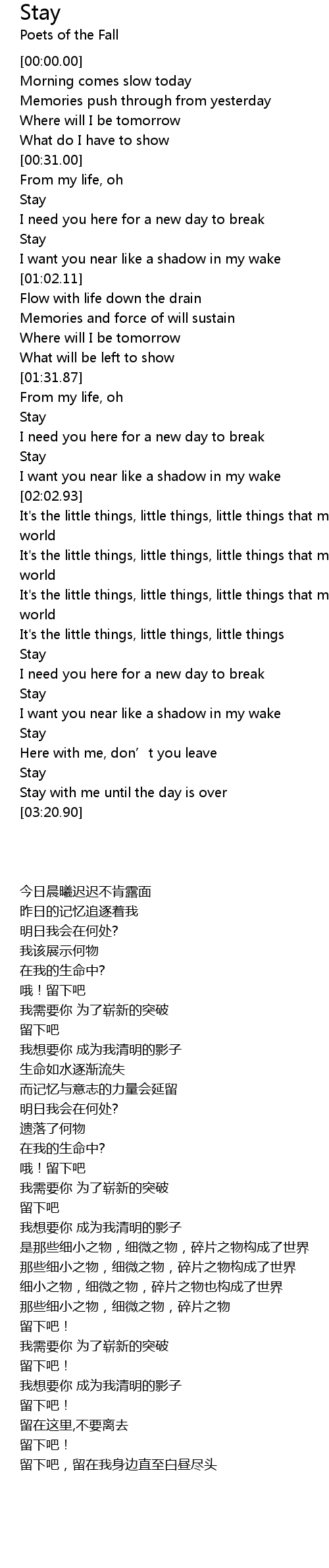 | [02:21.72] | It's the little things, little things, little things that make the world |