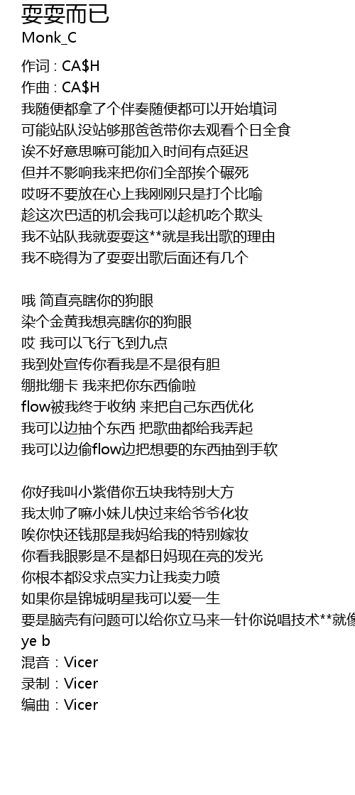 | 我不晓得为了耍耍出歌后面还有几个 | |