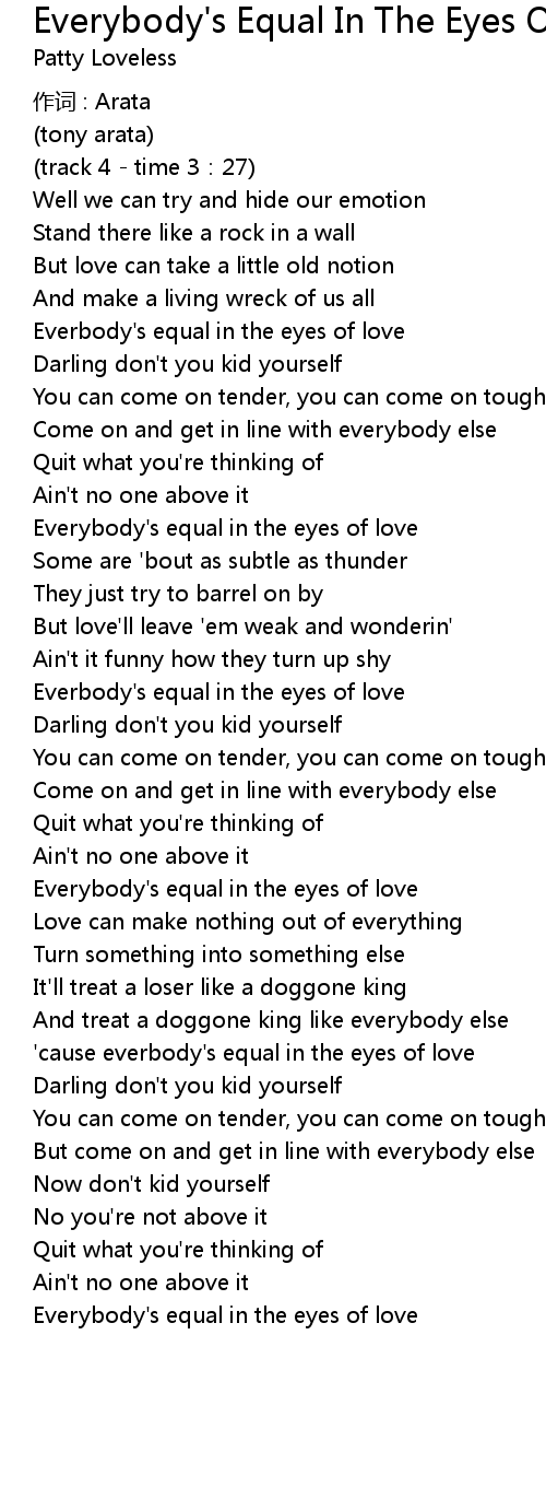 | ' cause everbody' s equal in the eyes of love | |
