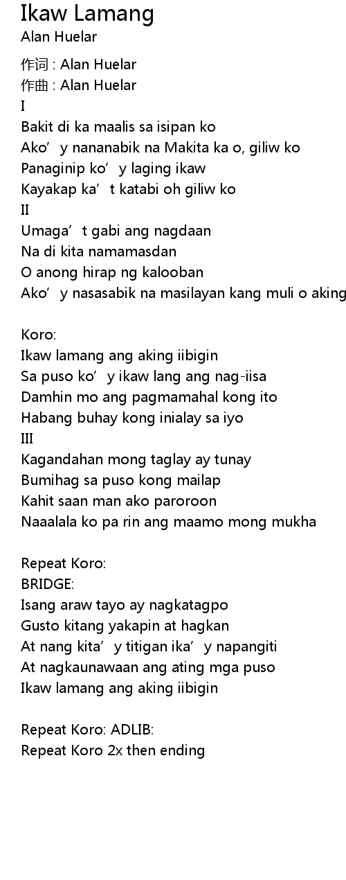 | Sa puso ko' y ikaw lang ang nagiisa | |
