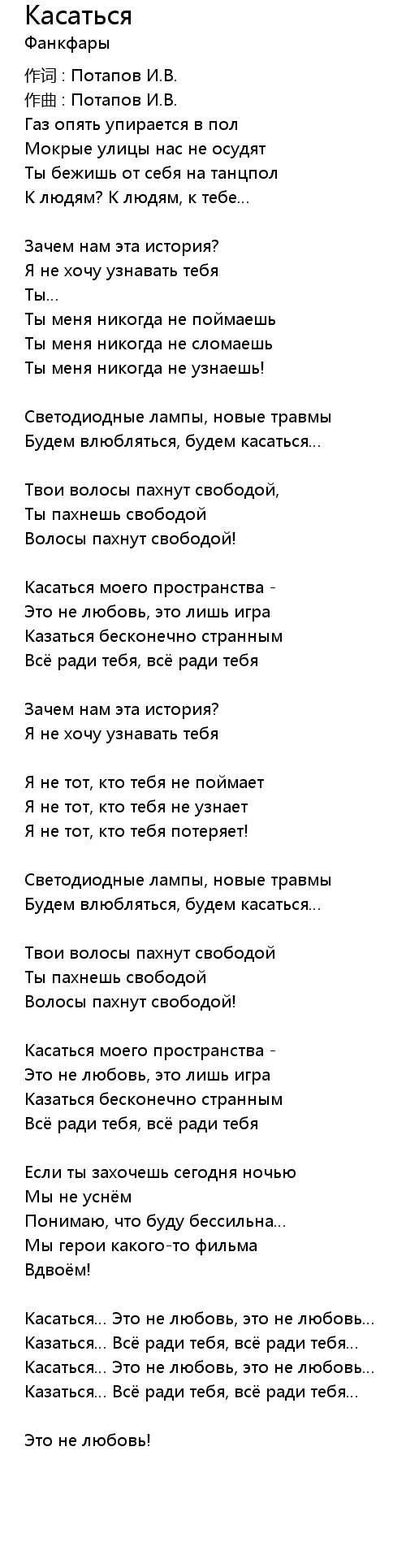 Касаться… Это не любовь, это не любовь… |