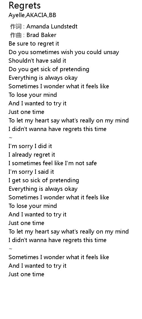 | [00:37.19] | I didn' t wanna have regrets this time |